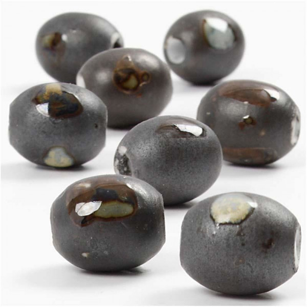 Pottery Beads, size 15x13 mm, hole size 3 mm, 13 pcs, stone beige [HOB-69966]