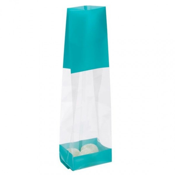Pack Quantity: 100Colour: TealThickness: 40 micronMaterial: OPP/CPPOuter Dimensions: 67 x 48 x 273 mmClosure: Open EndedHeat Sealable: YesFood Safe: Yes
