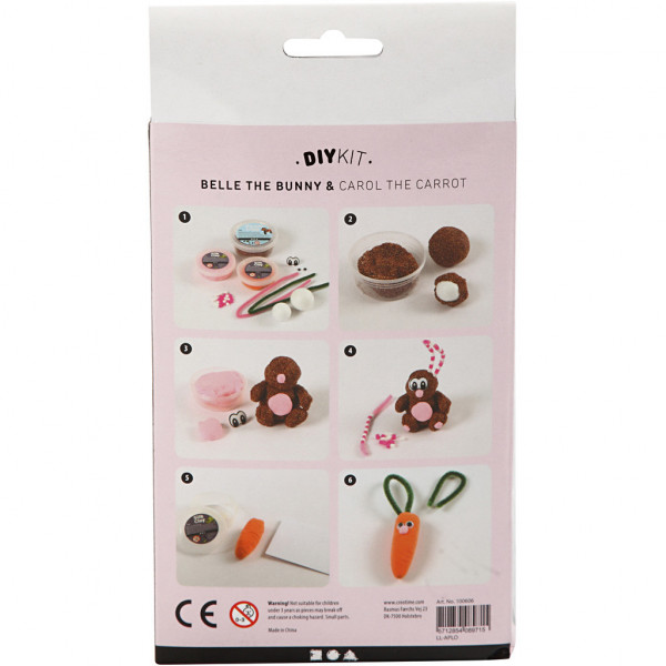 Contents: pink and white beads, 35g brown Foam Clay, 14g orange Silk Clay, 14g pink Silk Clay, 1 set of happy eyes, one set of rolling eyes, 1 pcs. pink chenille, 1 pcs. green chenille and 2 polystyrene balls.