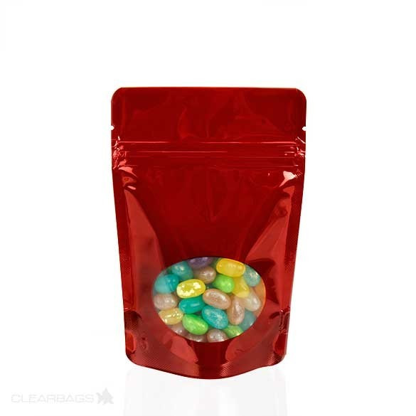 Stand Up Pouches Red with oval Window 8x5x13cm | 28 grams (100 pieces) [ZBGO1R]