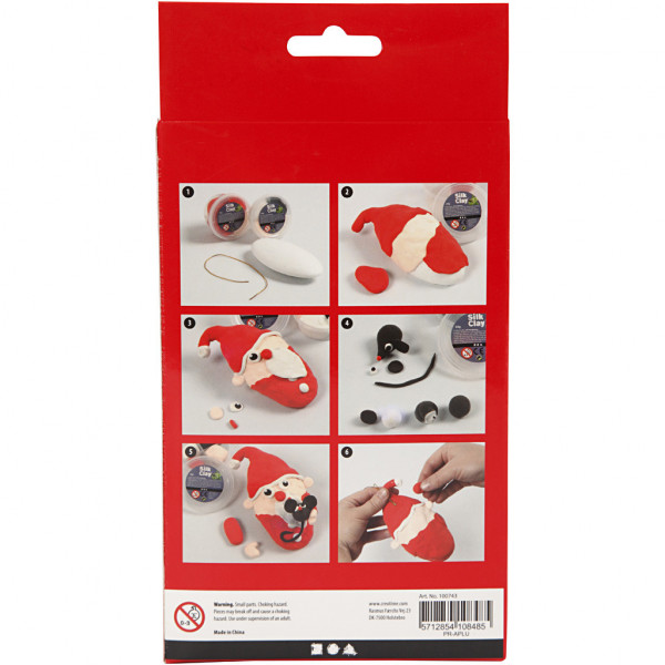 Kit to make a Christmas Santa in Silk Clay with chenille on styrofoam. Lanyard included for hanging.