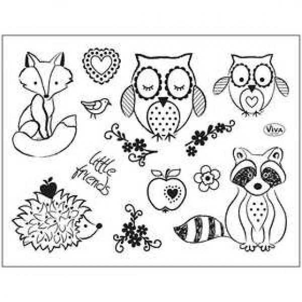 Sheets with different motives of transparent silicone. Mounted on acrylic block (item no. 24010 and 24009) and used as a stamp.