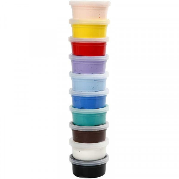 An assortment of self-hardening, pliable, soft and lightweight modelling compound, which retains its soft and rubber-like texture when dry.
