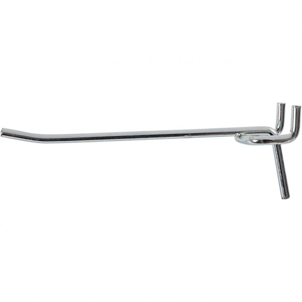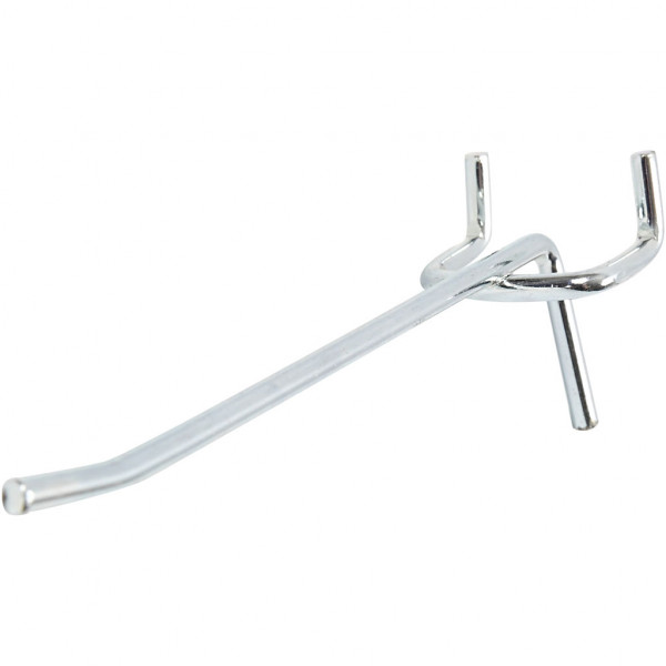 Single prong pegboard hook, chrome mounting of perforated plate.