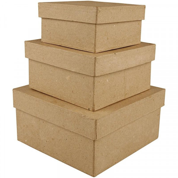 Square, hand-made boxes of papier-mâché - set of 3 sizes.