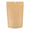 Reduce your impact on the environment with this eco-friendly Kraft Stand Up Pouch. The ZBGEK7 pouch measures 14.9 x 8.9 x 23.2 cm and holds 312 g. Package snacks, candy, mixes, nuts, and more. This pouch has a high moisture and oxygen barrier to keep products fresh. The 125 micron pouch is made of 65 gsm kraft paper and has tear notches and a round hang hole for retail. The inner lining is derived from plant-based material (PLA) and includes a clear ALOX coating, allowing this package to have high barrier properties and made from 100% compostable materials.
