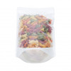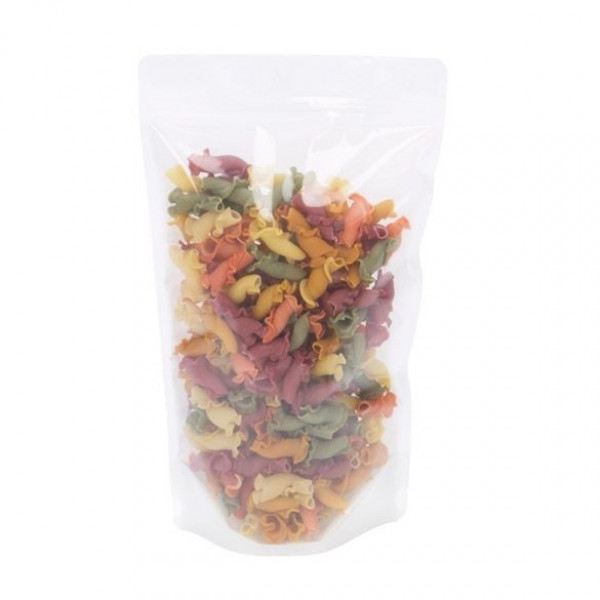 For a refreshing look on store shelves, this white rice paper pouch design is a perfect solution. ZBGR4WC measures 171 x 89 x 286 mm cmand can hold 8-12 ounces or 227-340 grams (based on whole coffee beans). Fill this pouch with coffee beans, tea leaves, protein powder mix, chips, granola, and more. This sturdy pouch is 125 micron thick and has a laminated interior for extra strength and barrier to keep your products fresh. The self-supporting design pouch expands when filled so it stands upright. Tear-away notches allow easy access when this pouch is heat sealed, while an airtight zipper provides a secure closure. A crystal clear front product window allows your products to be seen. This pouch is resealable and FDA approved.