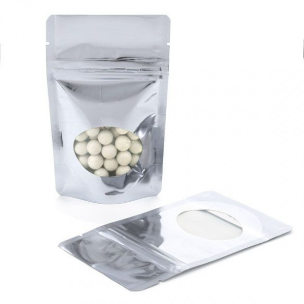 Metallized Zipper Pouch Bags with Oval Windows have the following features: