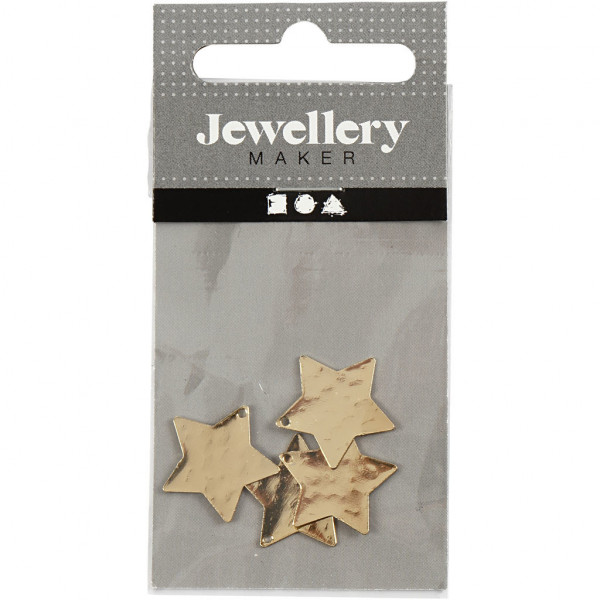 Star, D: 15 mm, hole size 1 mm, 4 pcs, gold-plated [HOB-60569]