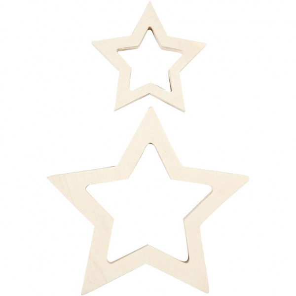Set of two stars of light wood in various sizes.