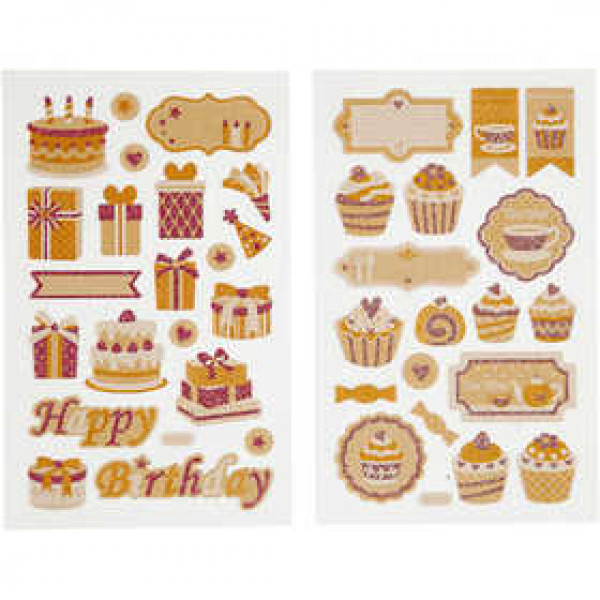 Self-adhesive motifs of matte paper. All the details in glitter.