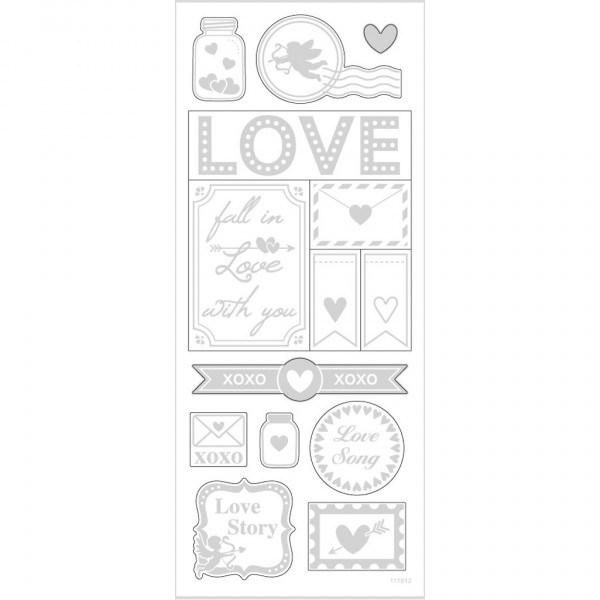 Stickers, sheet 10x24 cm, approx. 14 pc, 1 sheet, silver [HOB-29142]
