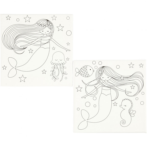 Good quality stretched cotton canvas - stapled on the reverse - pack contains 2 different print designs.