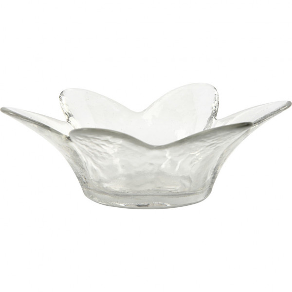 Tea light candle holder of glass.