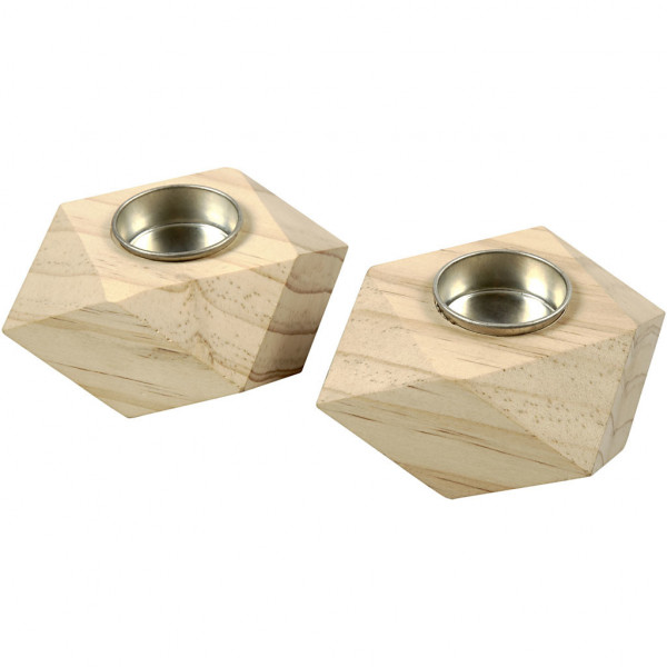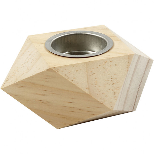Wooden geometric shaped candle holder with metall insert for tealights.