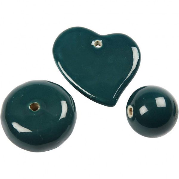 Trend Ceramic Beads, size 24-36 mm, hole size 2-3 mm, 3 mixed, dark green [HOB-63646]