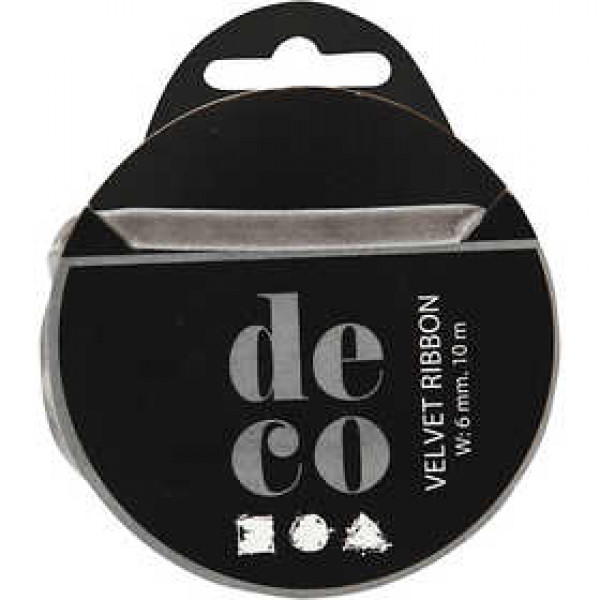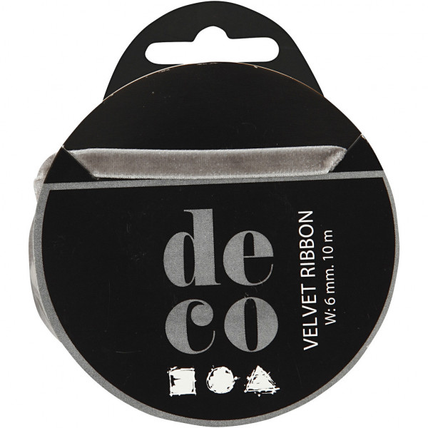Velvet Ribbon, W: 6 mm, 10 m, light grey [HOB-51305]