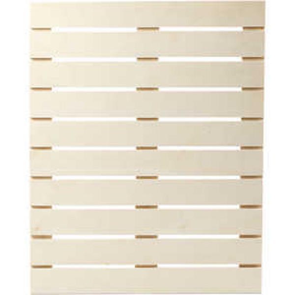 Panel of slats in light wood, mounted with brackets for both vertical and horizontal suspension.