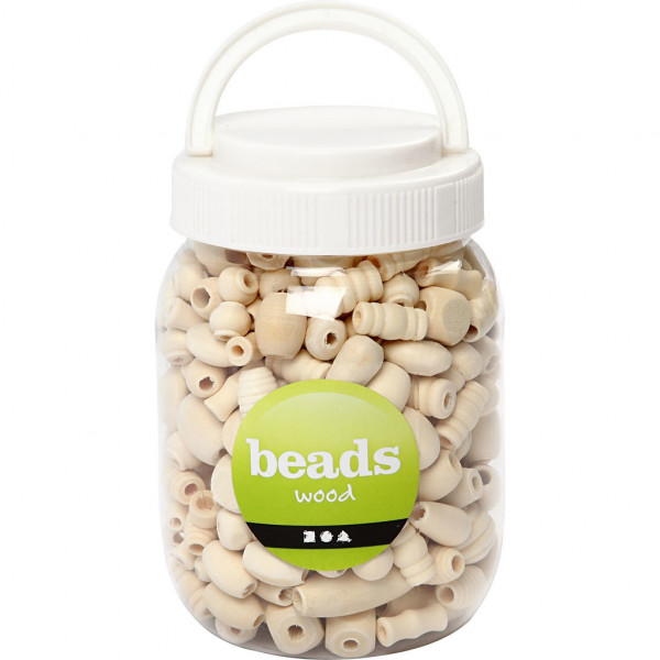 Medium size wooden beads. Supplied in a plastic bucket.