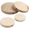 Flat wooden button with a hole running through centre.