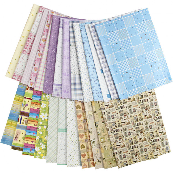 Assortment of patterned paper for eg decoupage, collage, wrapping, etc.